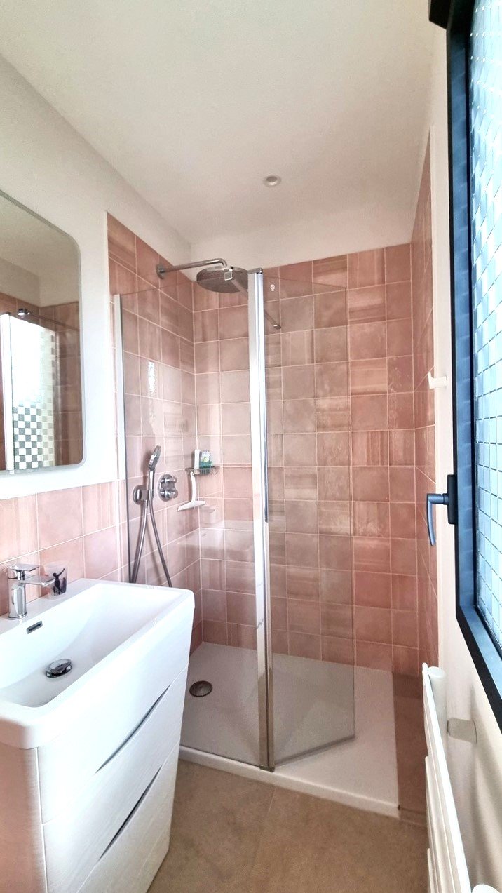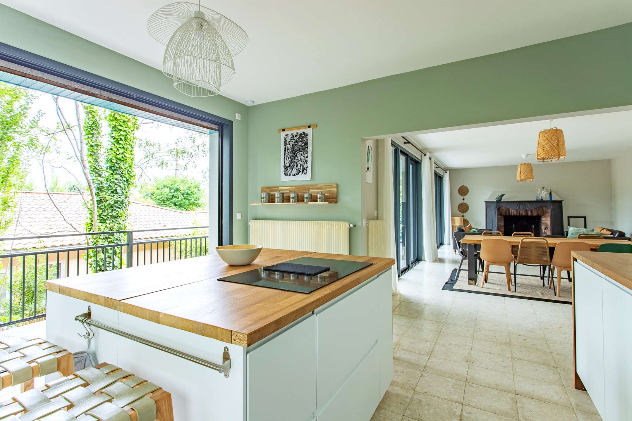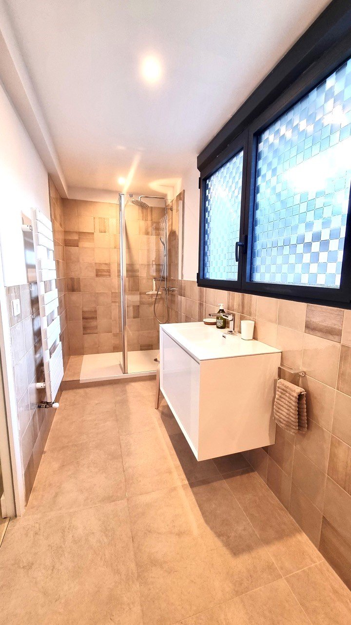 L’étage, quant à lui, donne sur un vaste séjour de 55 m² avec cheminée, une cuisine ouverte (20 m²) offrant un espace de vie éclairé et accueillant, avec un accès au balcon de 30 m² depuis ces pièces. Elle dispose également de trois spacieuses suites parentales : la première (27 m²) équipée d’un lit en 180, un dressing, sa salle d’eau et son WC, la seconde (14 m²) et la troisième (13 m²) sont équipées d’un lit en 140, chacune avec sa propre salle d’eau, ainsi qu’un WC séparé qui vient compléter l’ensemble.