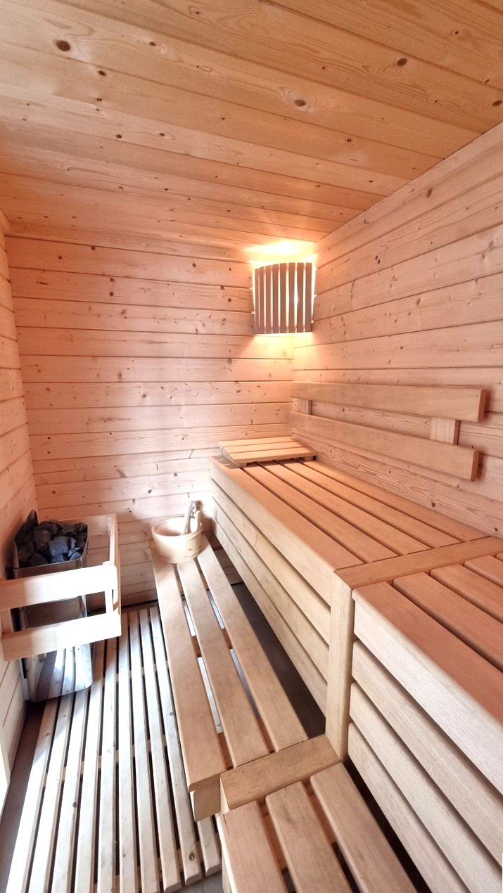 Au rez-de-chaussée, elle dispose d’un grand et lumineux salon de 35 m² avec TV, d’un billard convertible, d’une cuisine d’été (18 m²) s’ouvrant sur une très belle terrasse avec pergola, de trois chambres, dont une suite parentale (19 m²) avec un lit en 180, sa salle d’eau et son WC, d’une grande chambre (20 m²) avec deux lits de 90 convertibles en 180, et d’une chambre avec deux lits de 90 (14 m²). Les deux chambres bénéficient d’un accès direct sur l’extérieur. Une grande salle d’eau équipée d’une double douche, son grand sauna de six places, son WC, une buanderie avec machine à laver et sèche-linge, ainsi qu’un WC indépendant.