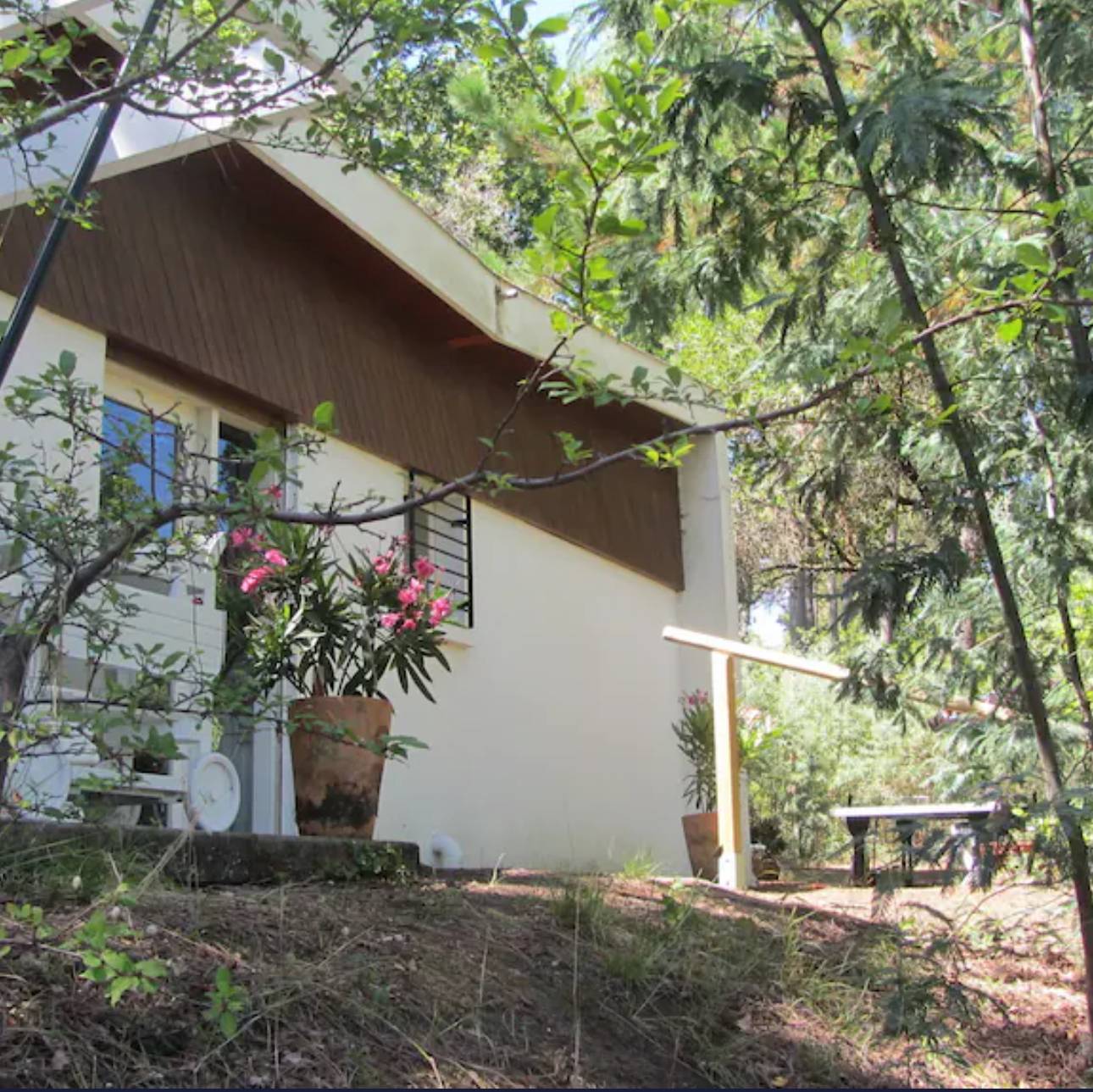 La villa restée dans son style bien typique des années 60 est divisée en 2 niveaux.