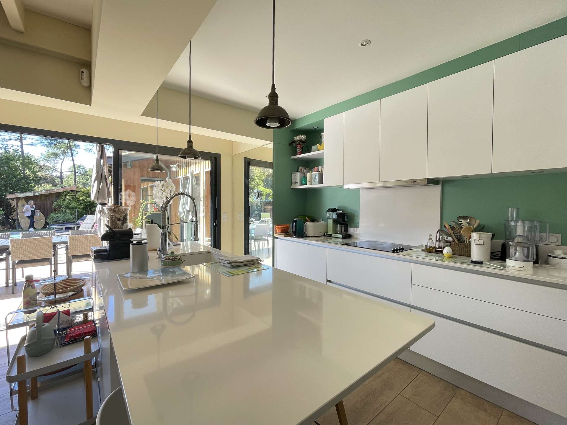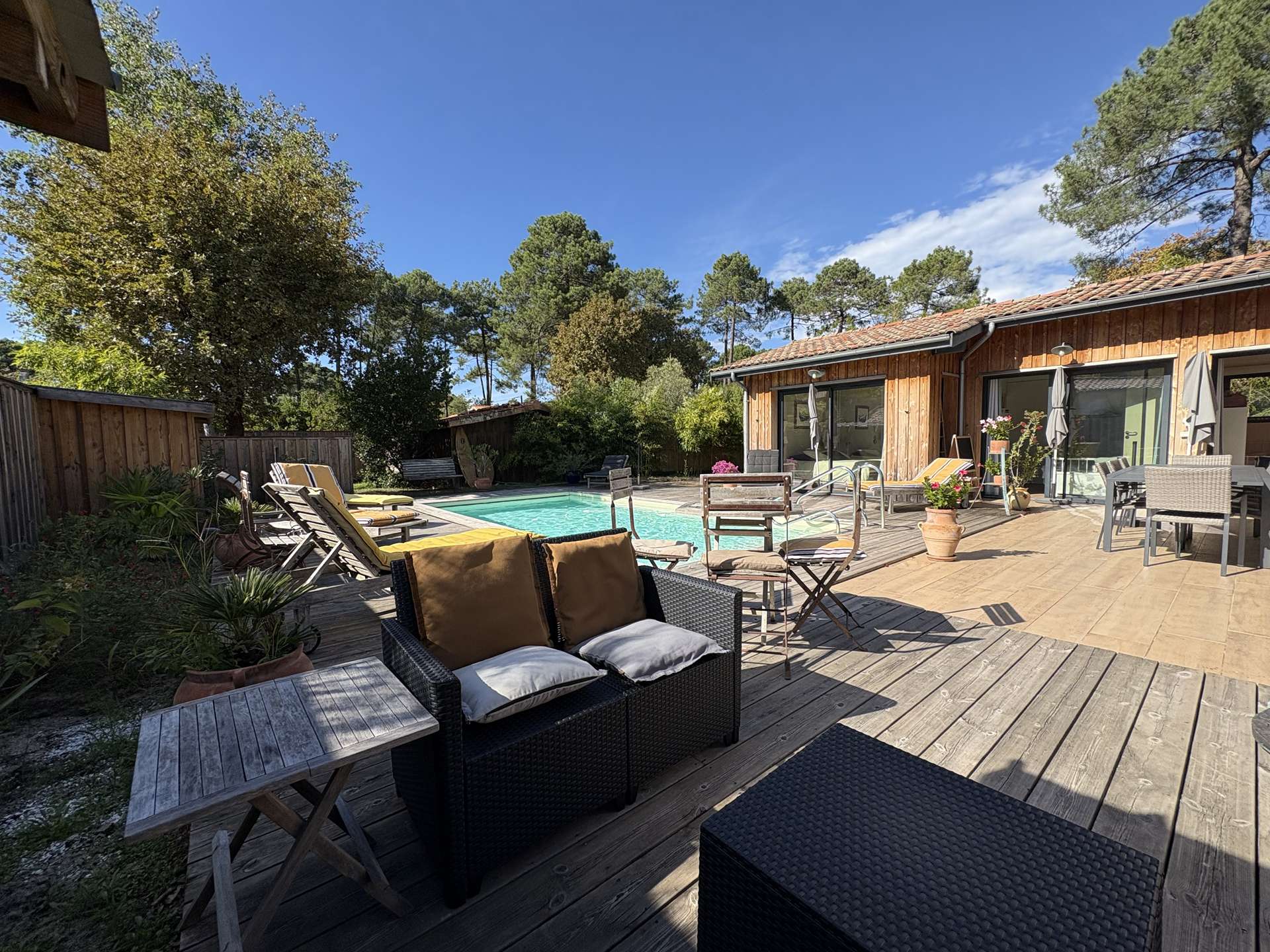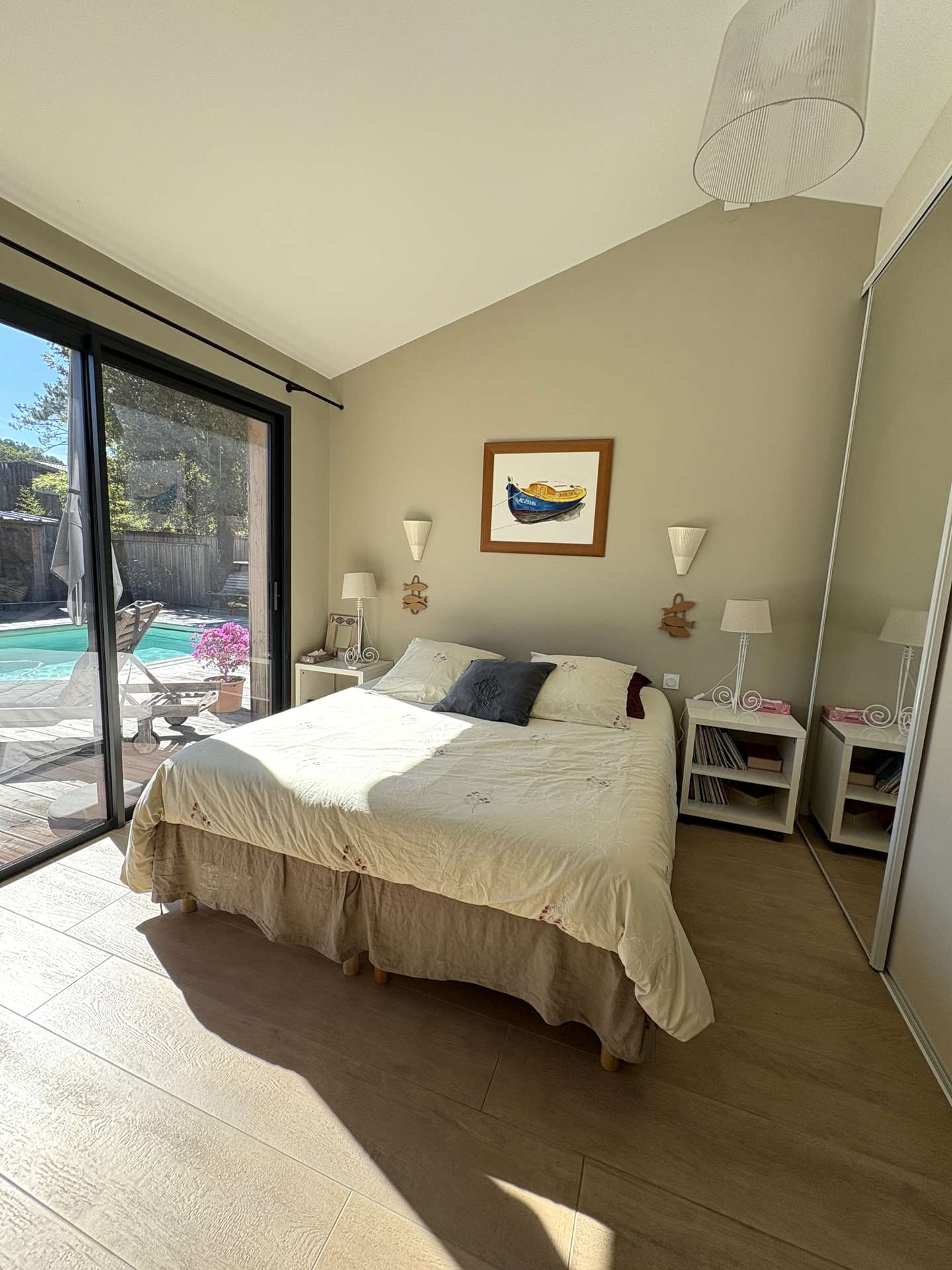 Le tout s’ouvre sur un magnifique jardin clos et paysager de 873 m², offrant une parfaite intimité et des aménagements extérieurs de qualité : salon de jardin, transats, parasol, plancha, douche extérieure… Chaque détail a été pensé pour offrir un cadre de vie privilégié, que ce soit pour des vacances reposantes ou après une journée d’activités sportives. Cette propriété rare conjugue avec justesse élégance, fonctionnalité et douceur de vivre, et représente une opportunité idéale pour des vacances réussies sur le Bassin d’Arcachon.