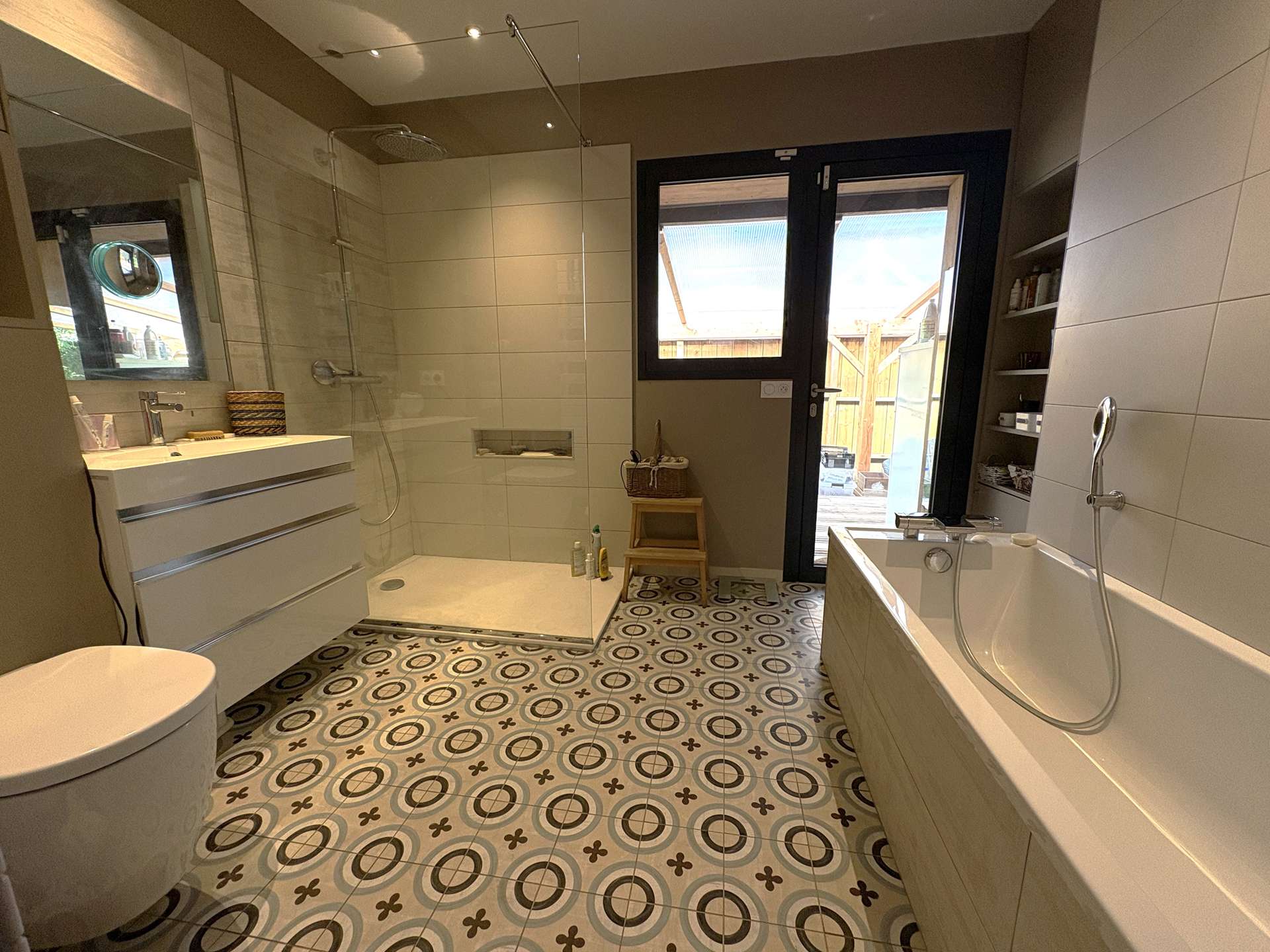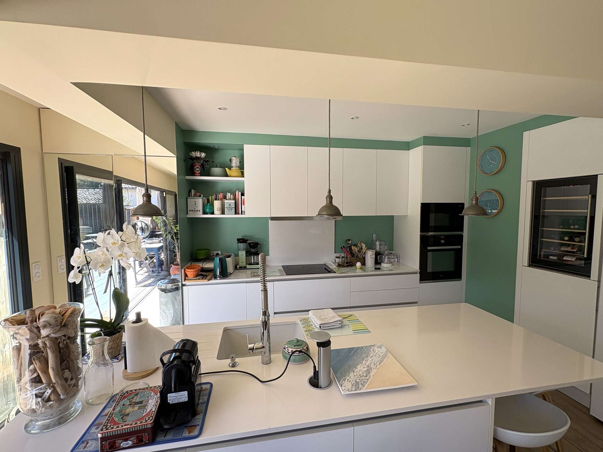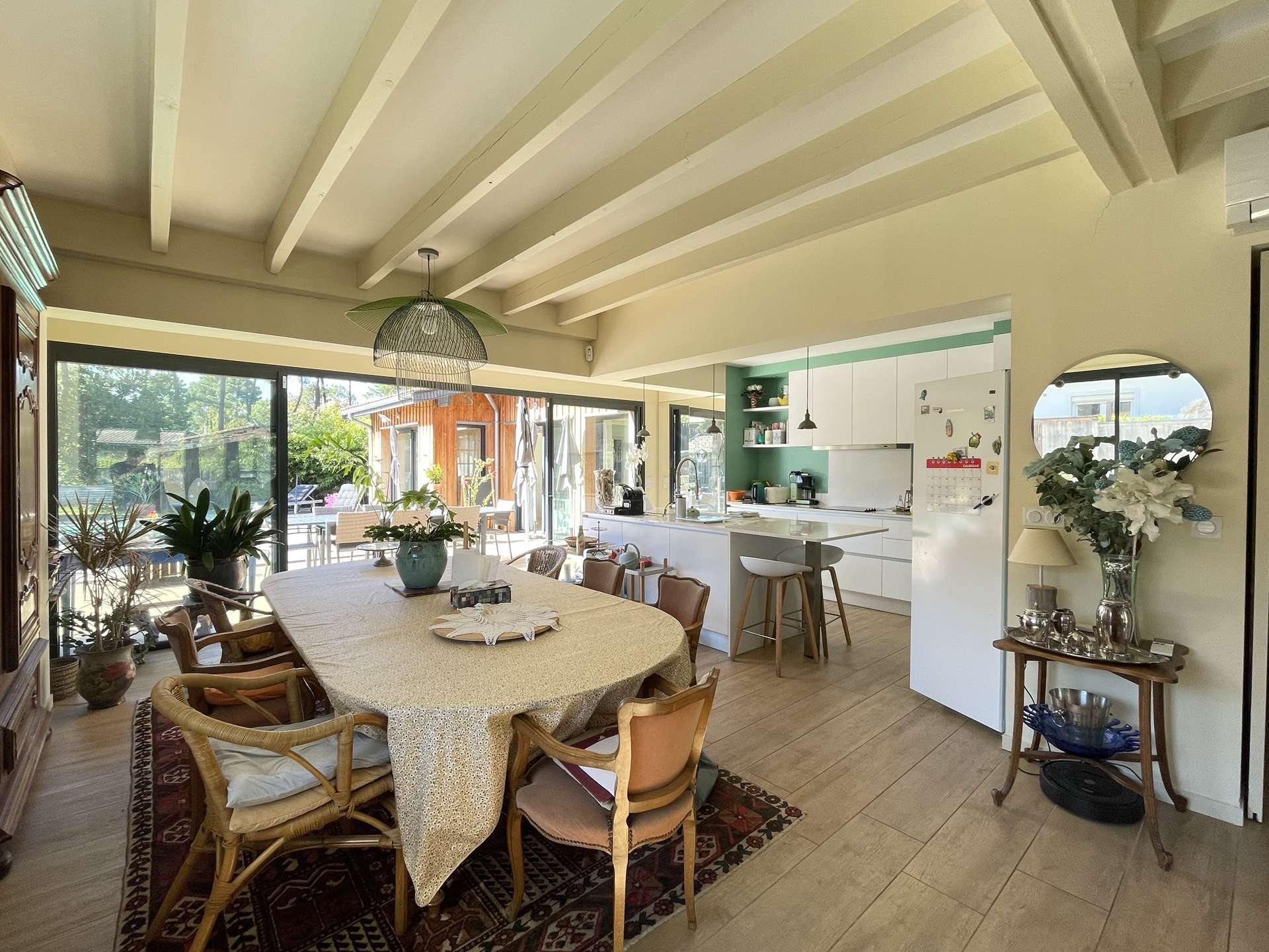 Le tout s’ouvre sur un magnifique jardin clos et paysager de 873 m², offrant une parfaite intimité et des aménagements extérieurs de qualité : salon de jardin, transats, parasol, plancha, douche extérieure… Chaque détail a été pensé pour offrir un cadre de vie privilégié, que ce soit pour des vacances reposantes ou après une journée d’activités sportives. Cette propriété rare conjugue avec justesse élégance, fonctionnalité et douceur de vivre, et représente une opportunité idéale pour des vacances réussies sur le Bassin d’Arcachon.