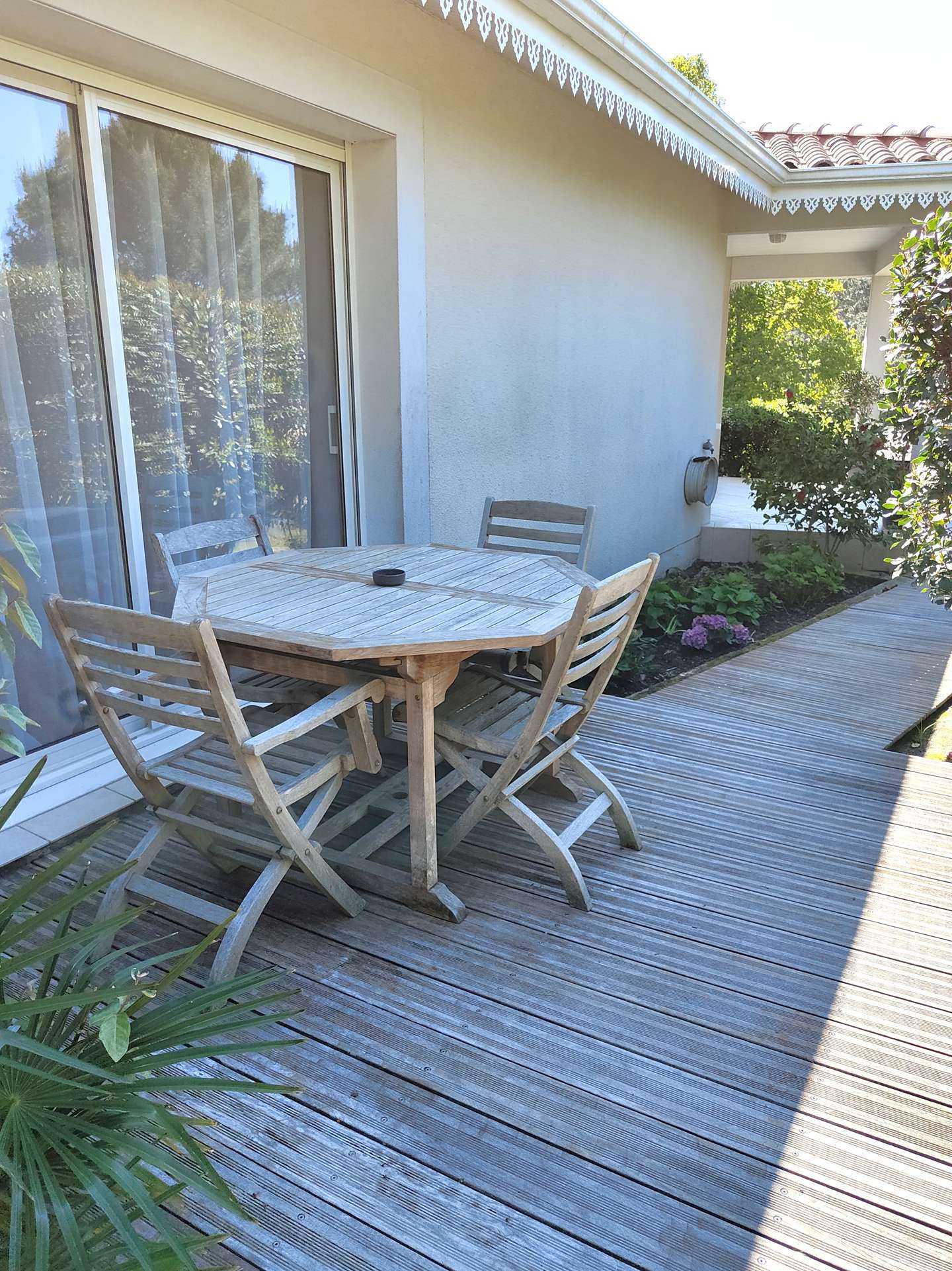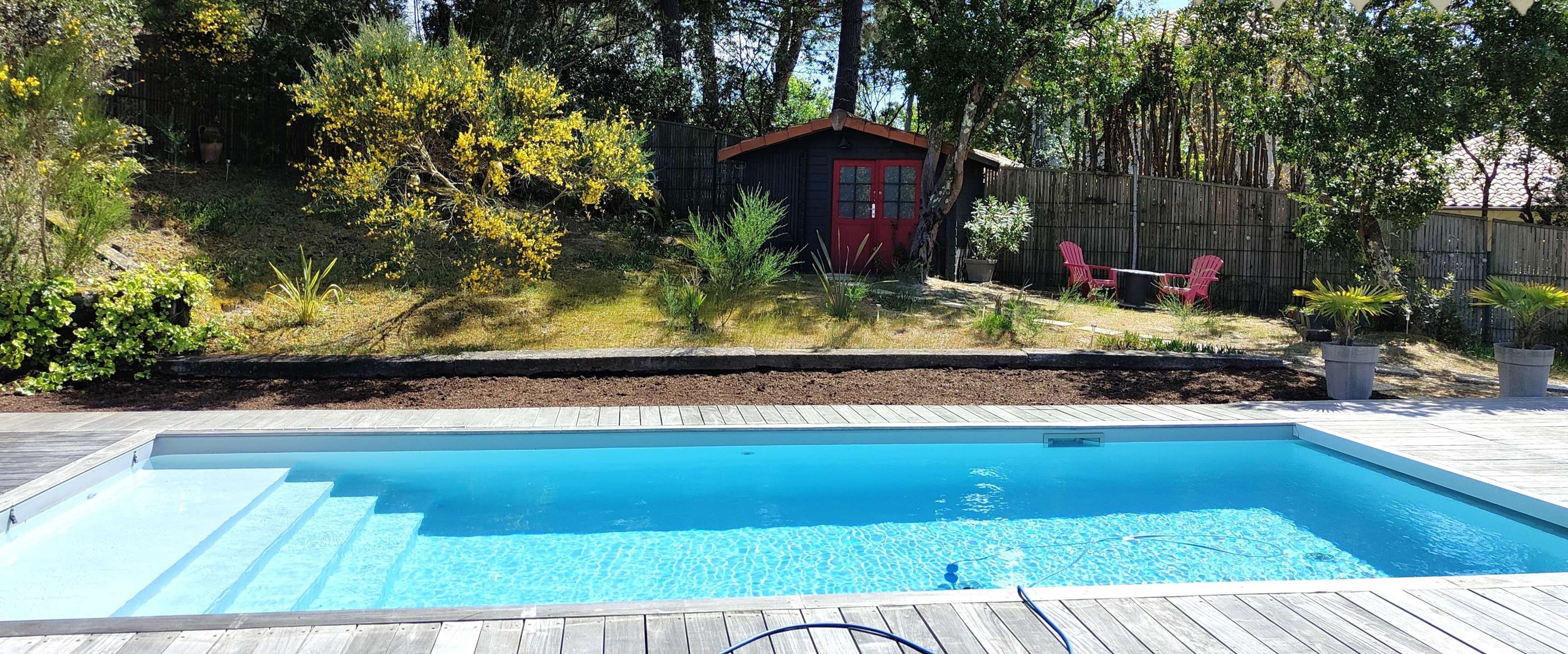 Profitez d’un joli jardin clos et verdoyant de 1 200 m², d’une belle terrasse exposée plein sud et de sa piscine au sel, chauffée. L’extérieur est entièrement équipé : plancha, douche extérieure, salon de jardin, transats, parasol etc.