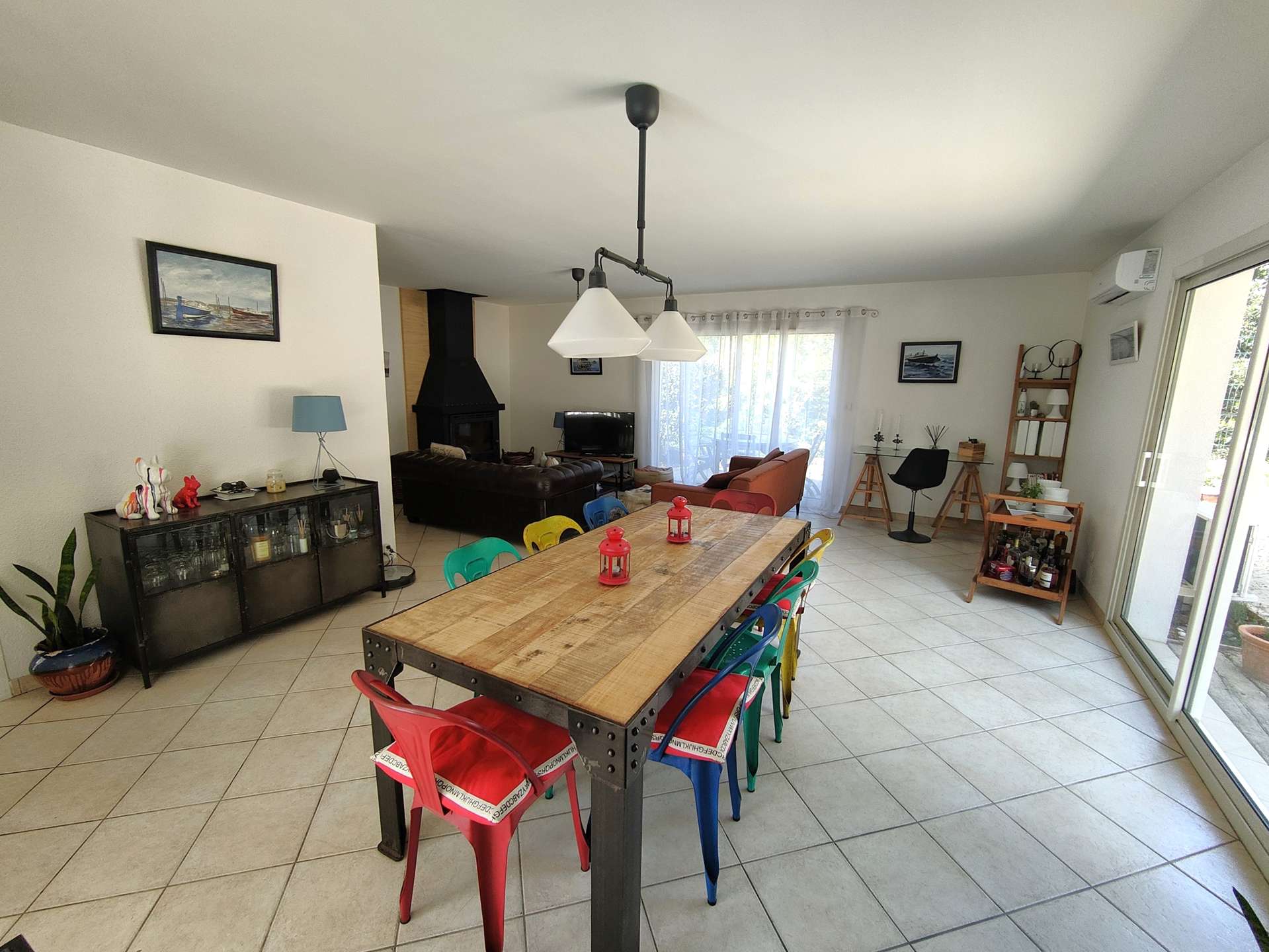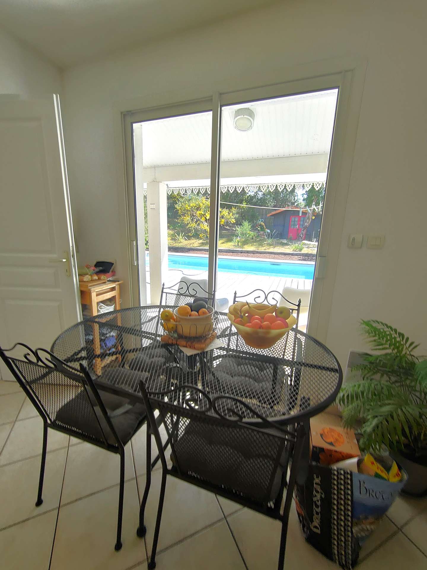 Cette villa de plain-pied de 140 m² se compose d’un grand salon-séjour climatisé, une cuisine entièrement équipée avec son cellier, le tout ouvrant sur une grande et agréable terrasse avec piscine chauffée et sécurisée (8,50 x 3,50 ).