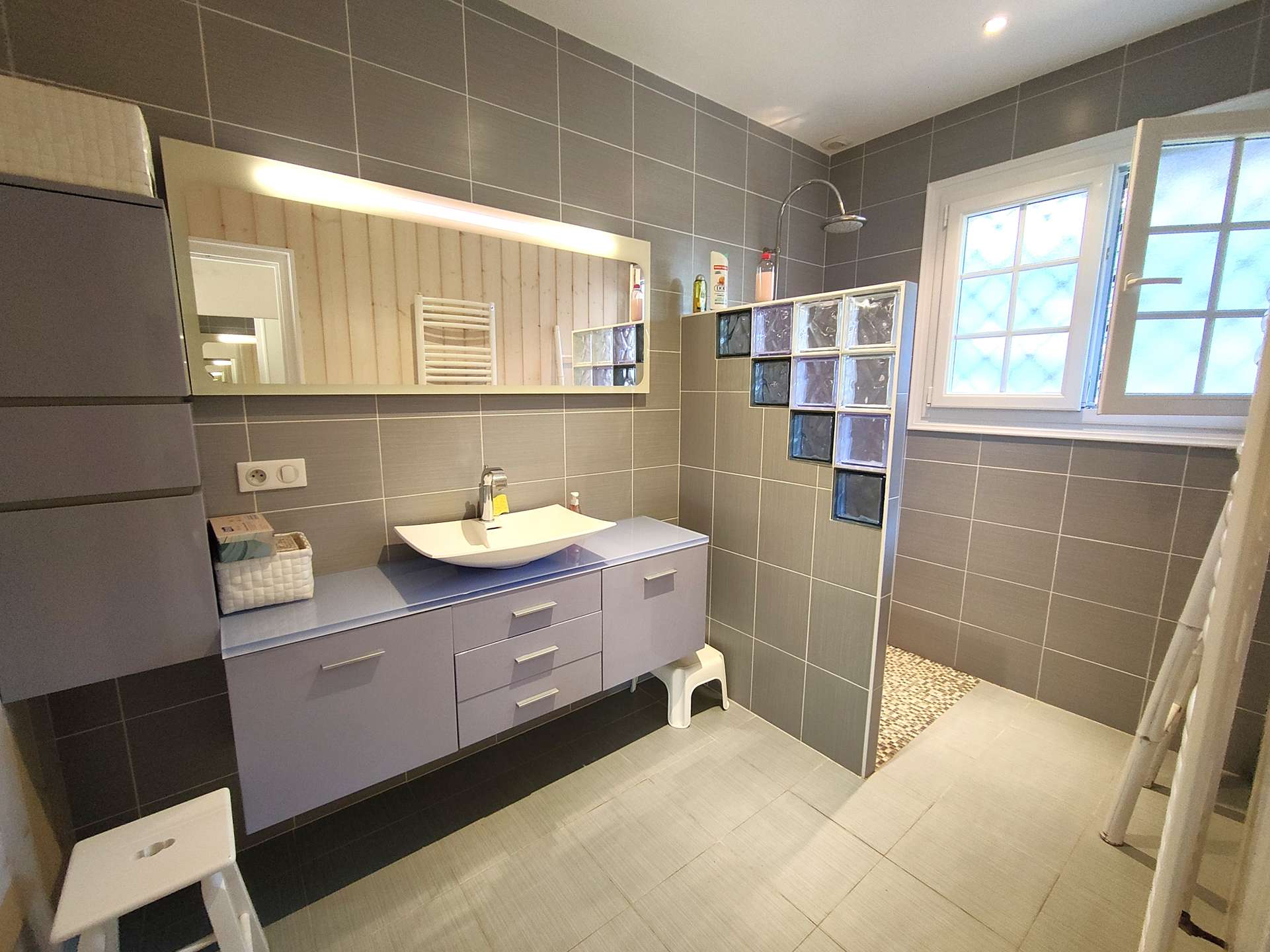Villa sur deux niveaux comprenant, au rez-de-chaussée, un salon ensoleillé et spacieux s’ouvrant sur une grande et belle terrasse orientée sud, une cuisine aménagée et équipée, un cellier avec machine à laver, ainsi que deux chambres équipées de lits en 140 donnant également sur terrasse. Une grande salle d’eau avec douche à l’italienne et deux WC indépendants.