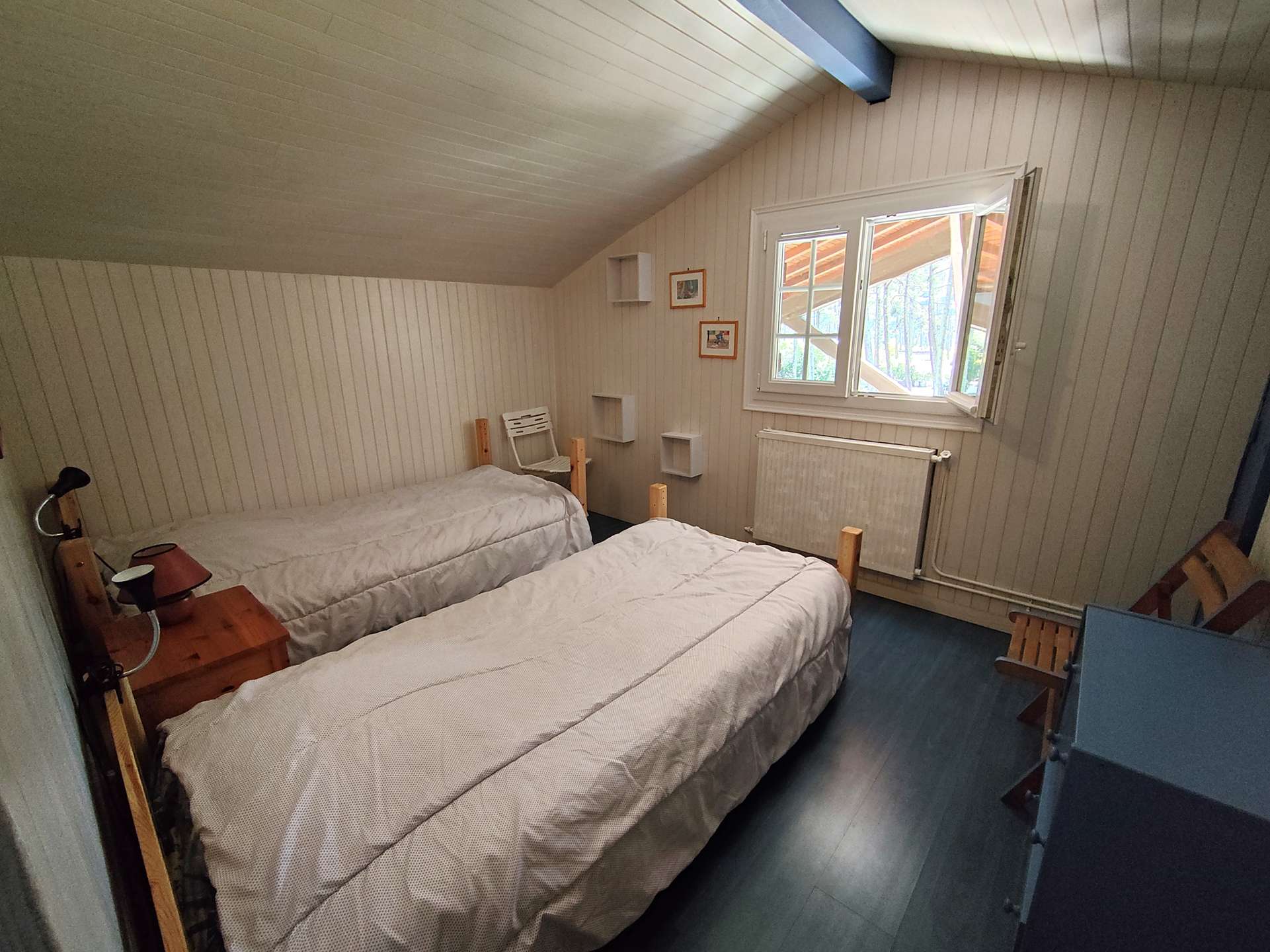 A l’étage, elle dispose de 2 chambres mansardées, l’une avec 2 lits en 90 modulables en 180 et la dernière avec 2 lits en 90.