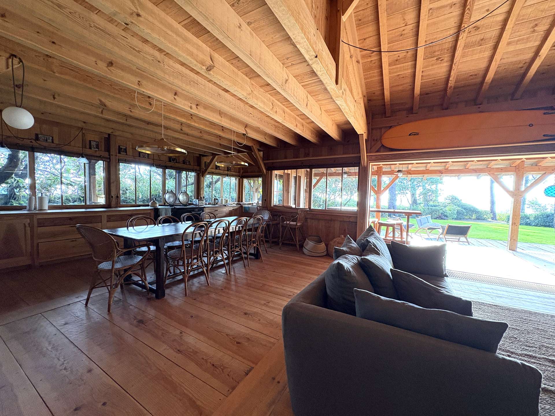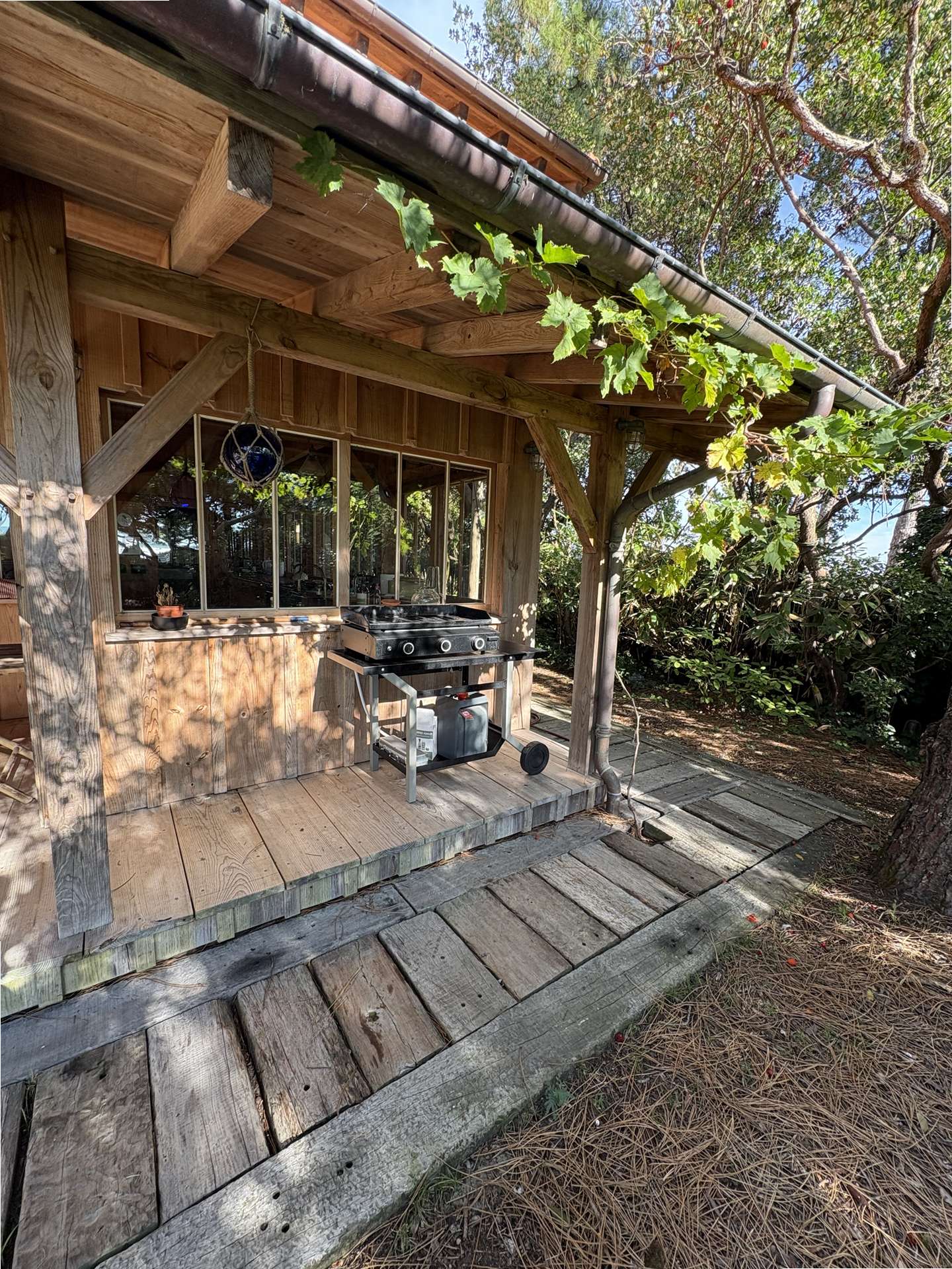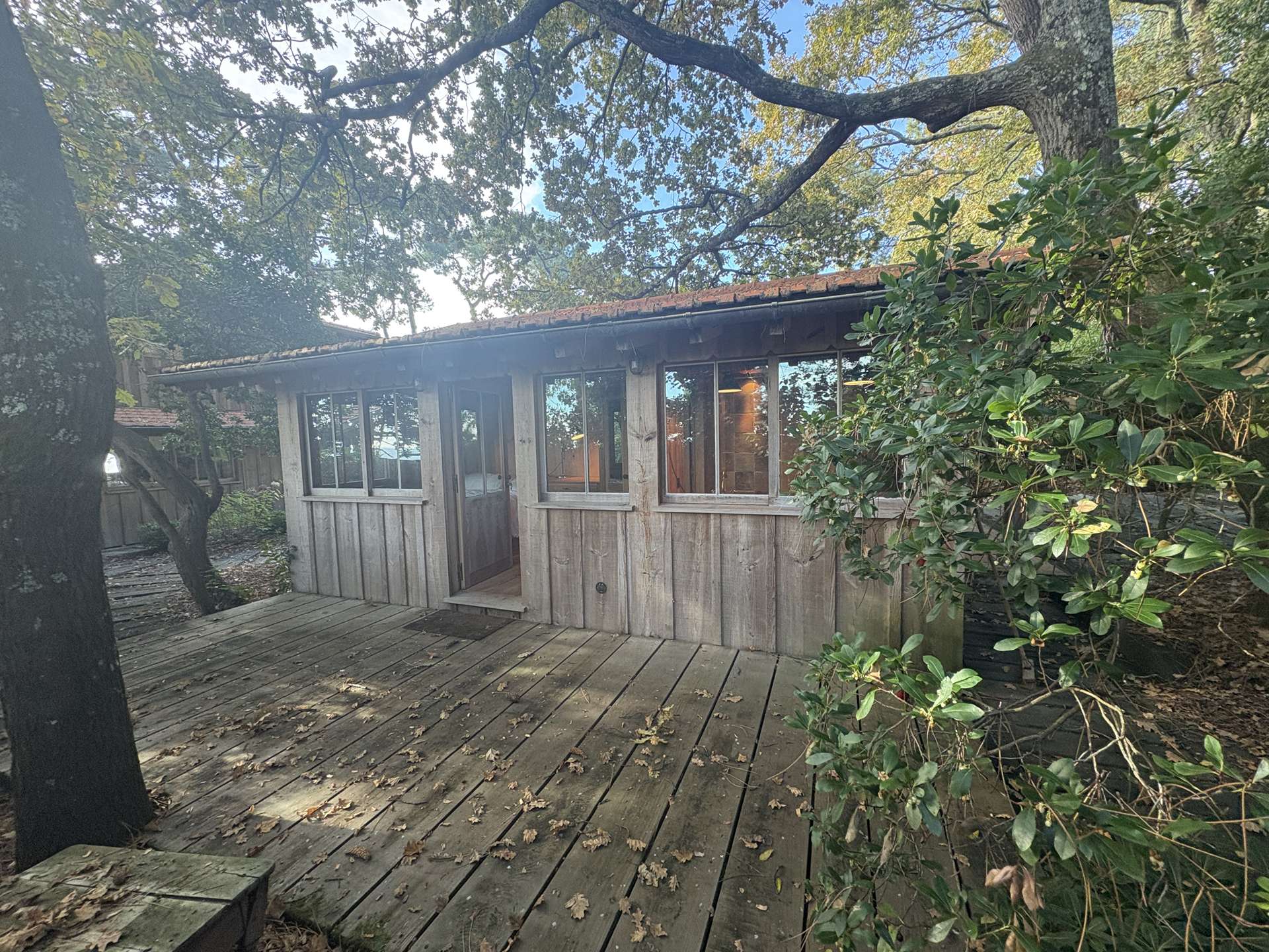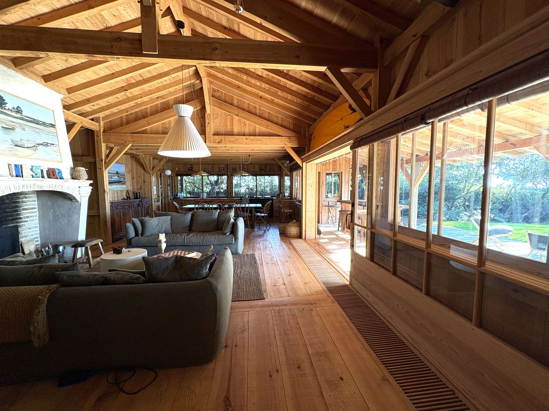 Installée sur un terrain arboré de 2375 m², elle dispose d’une grande terrasse avec plancha pour des repas en famille ou entre amis, un salon de jardin, chaises longues et douche extérieure, parfaite pour profiter pleinement de l’extérieur après une journée à la plage.