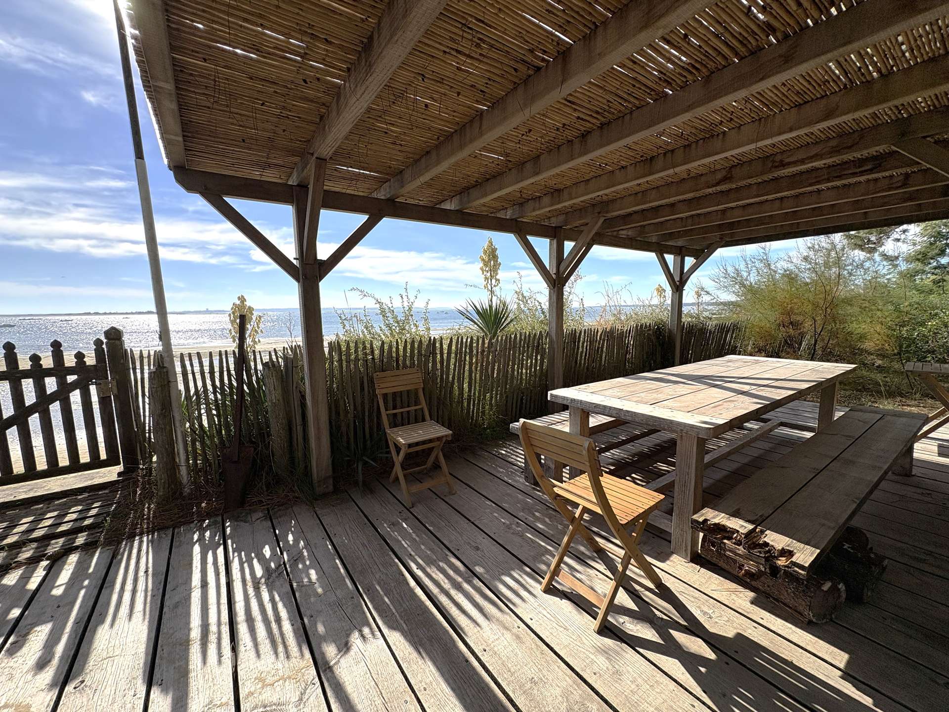Située en première ligne sur la plage de la Pointe aux Chevaux à Grand Piquey, cette villa offre une retraite sereine au cœur d’une verdure luxuriante, avec un accès direct à la plage. Cette élégante villa avec piscine de 6m x 3m s’intègre harmonieusement à son environnement naturel, offrant un havre de paix aux invités en quête de détente et de ressourcement.