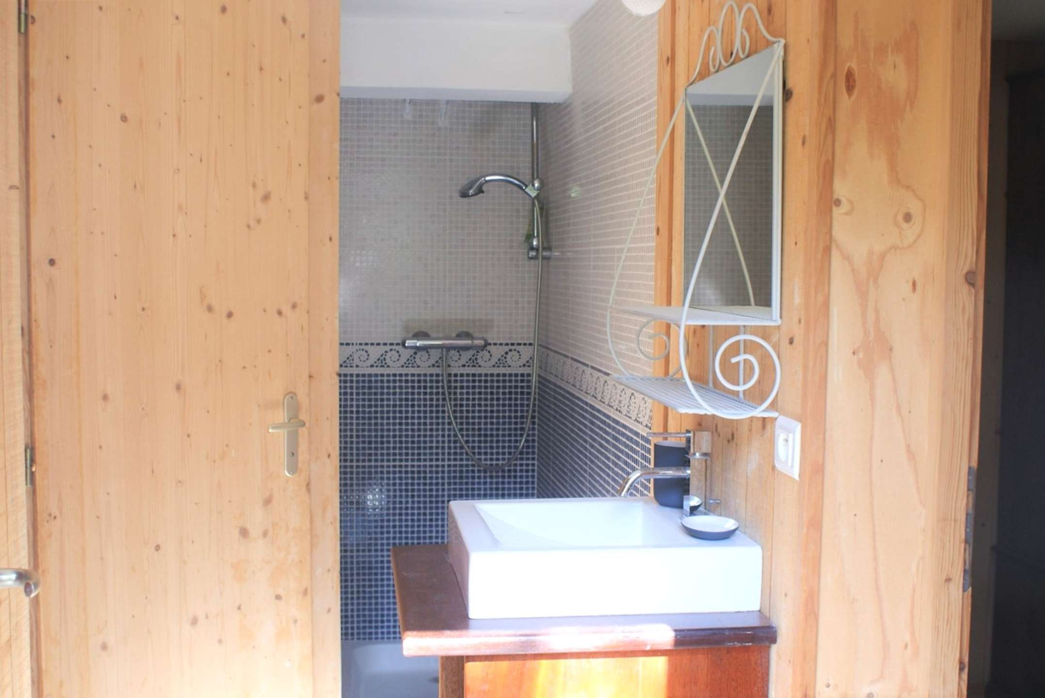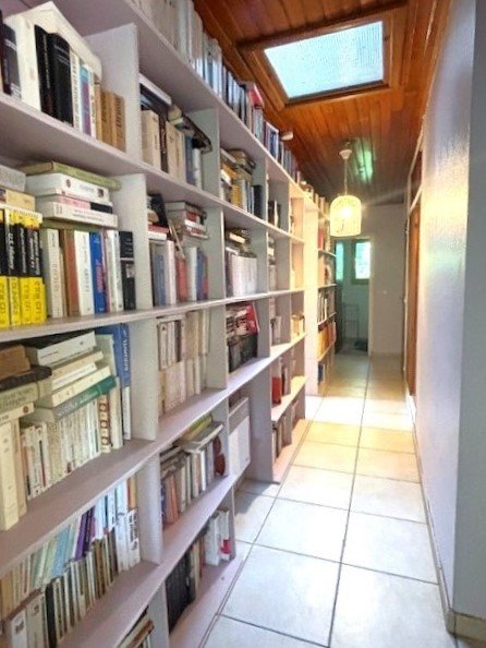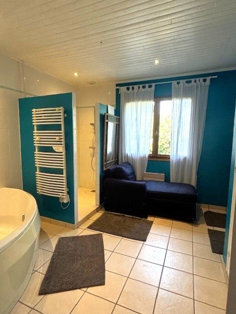 Vous y trouverez également une grande salle de bain avec une baignoire d’angle et douche à l’italienne, une salle d’eau, un WC indépendant, une buanderie avec machine à laver et sèche-linge, ainsi qu’un dégagement avec une grande bibliothèque et des jeux de société pour des moments de détente et de partage.