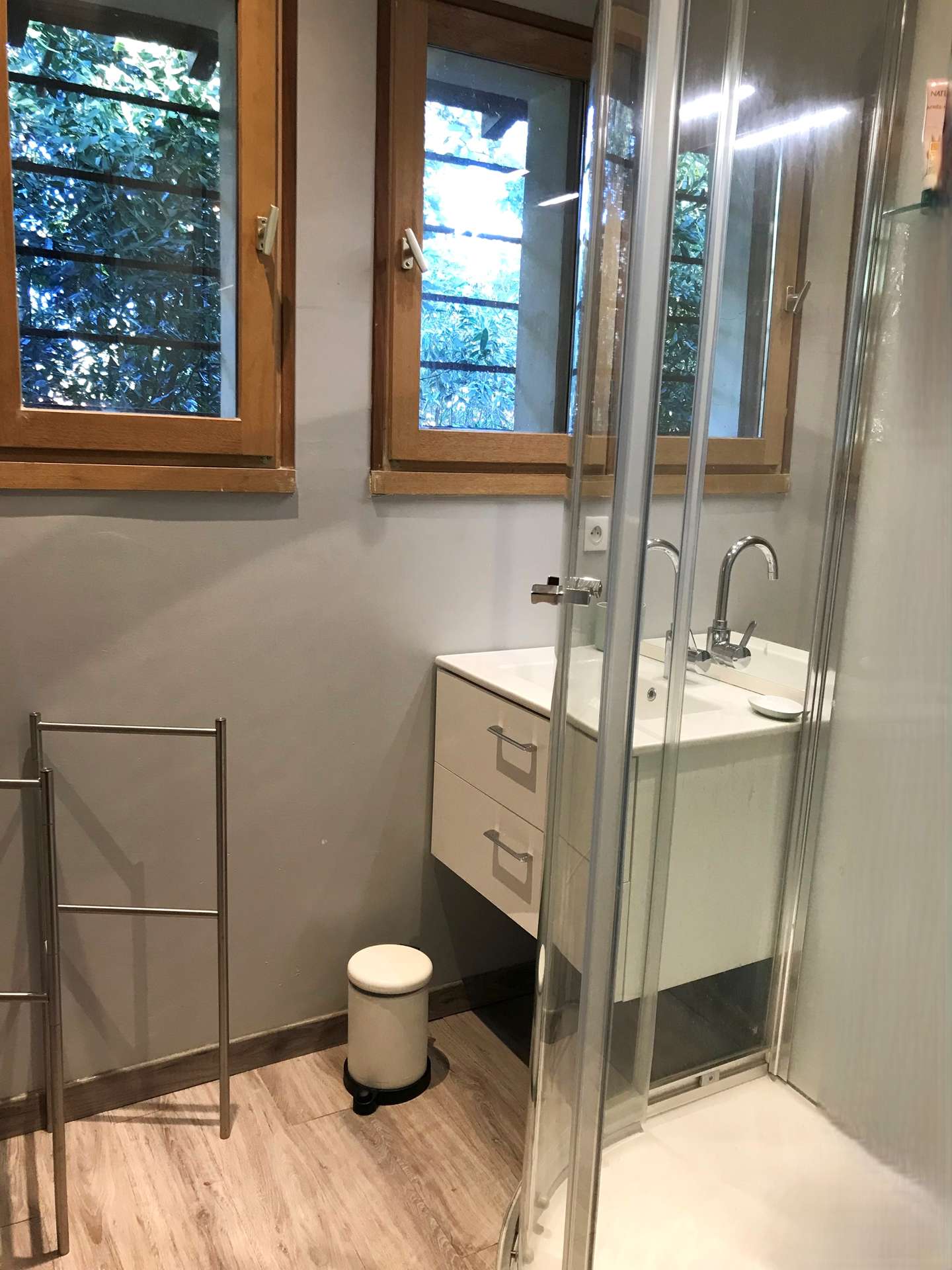 L’espace nuit comprend deux chambres, la première avec un lit en 140, une salle d’eau avec douche à l’italienne et un WC attenant, la seconde dispose de deux lits en 80, modulables en un lit en 160.