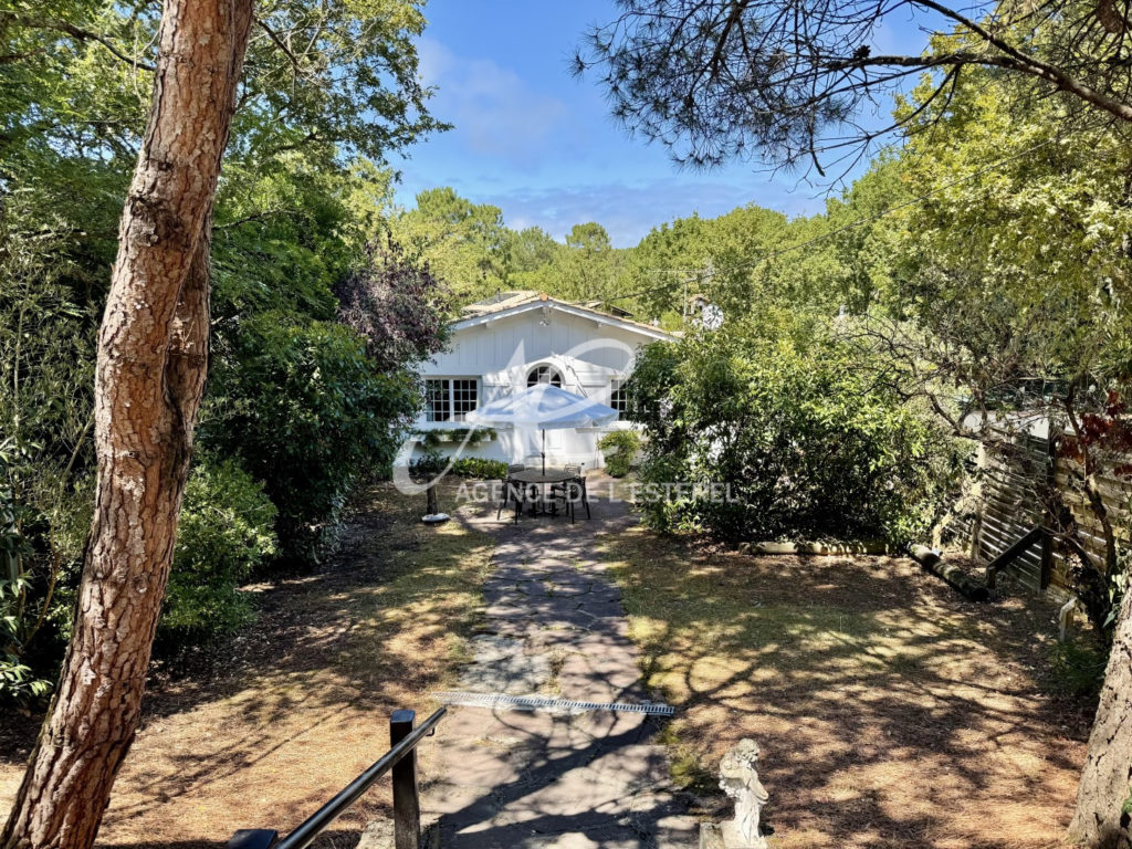 Une maison pleine de charme avec un joli jardin arboré, offrant un accès aux plages du Bassin et aux commerces de Piquey à pied.
