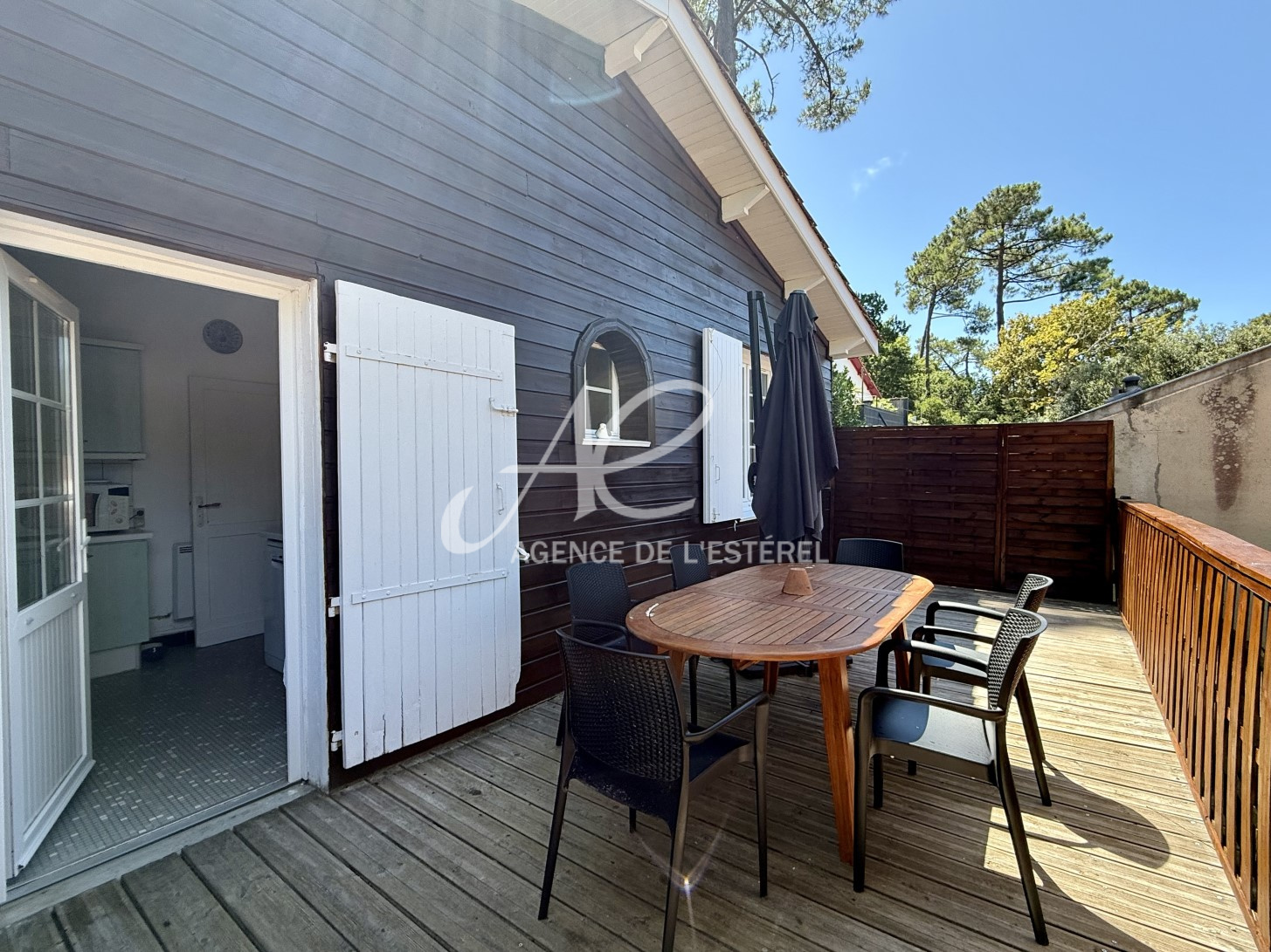 Bien agencée, elle est composée d’un double séjour, deux grandes chambres, une salle d’eau, une cuisine aménagée et équipée qui ouvre sur une belle terrasse bois; et une douche extérieure pour les retours de plage.